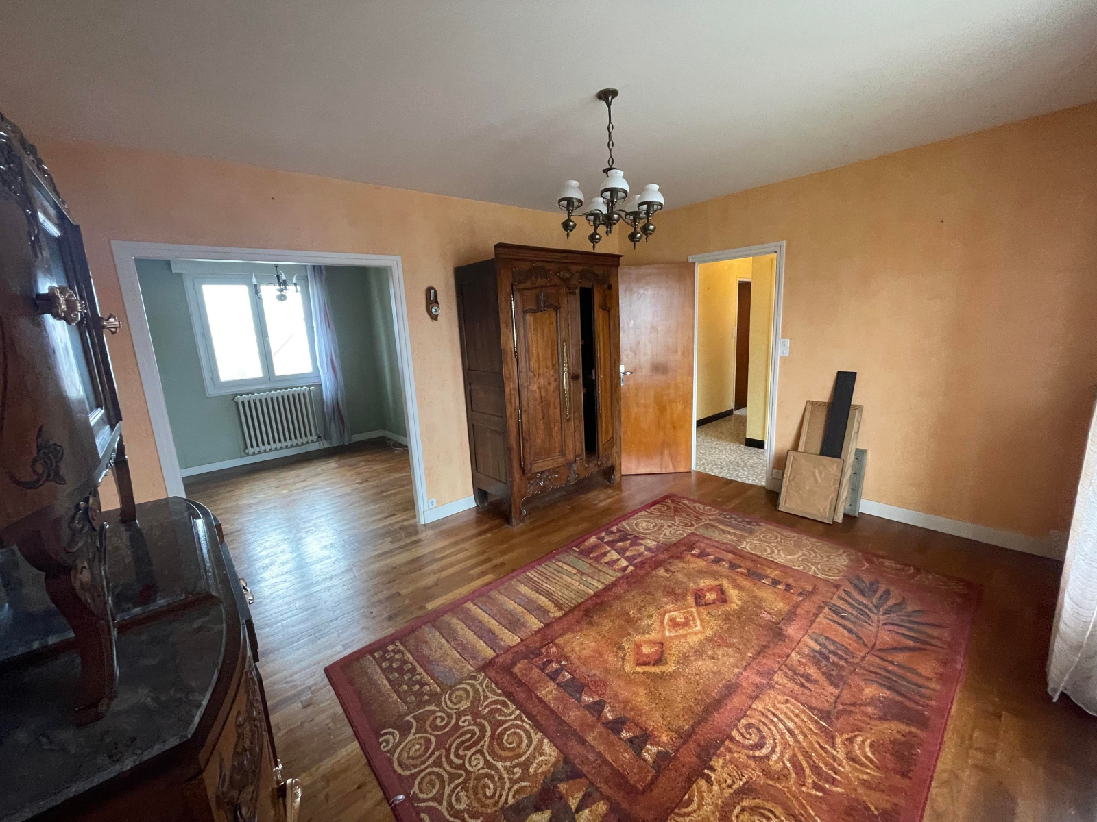 Au rez-de-chaussée : Un hall d'entrée déservant salon, salle à manger, une cuisine, une salle d'eau, deux chambres, et un wc.