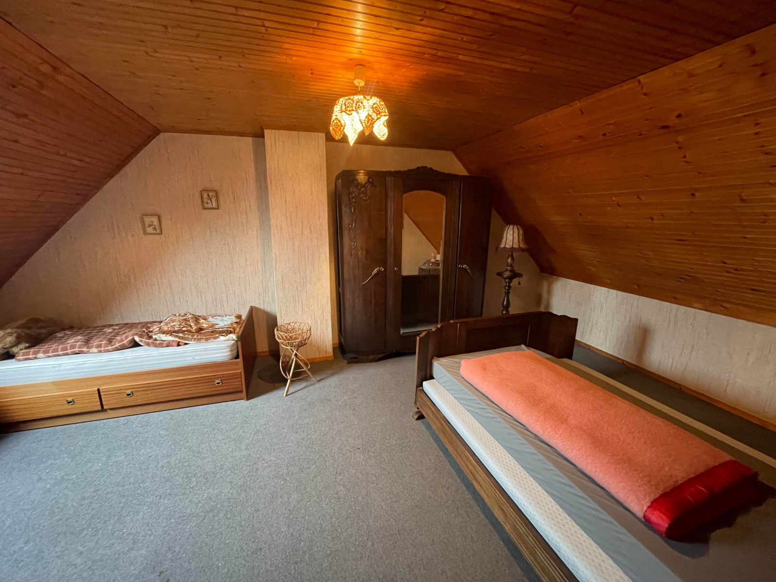 A l'étage : Une chambre et un grenier aménageable.