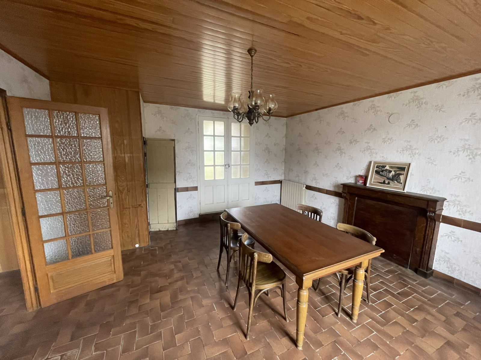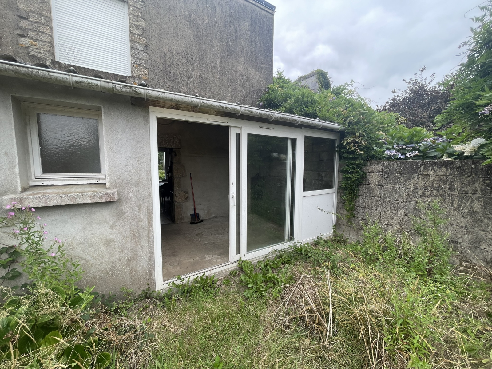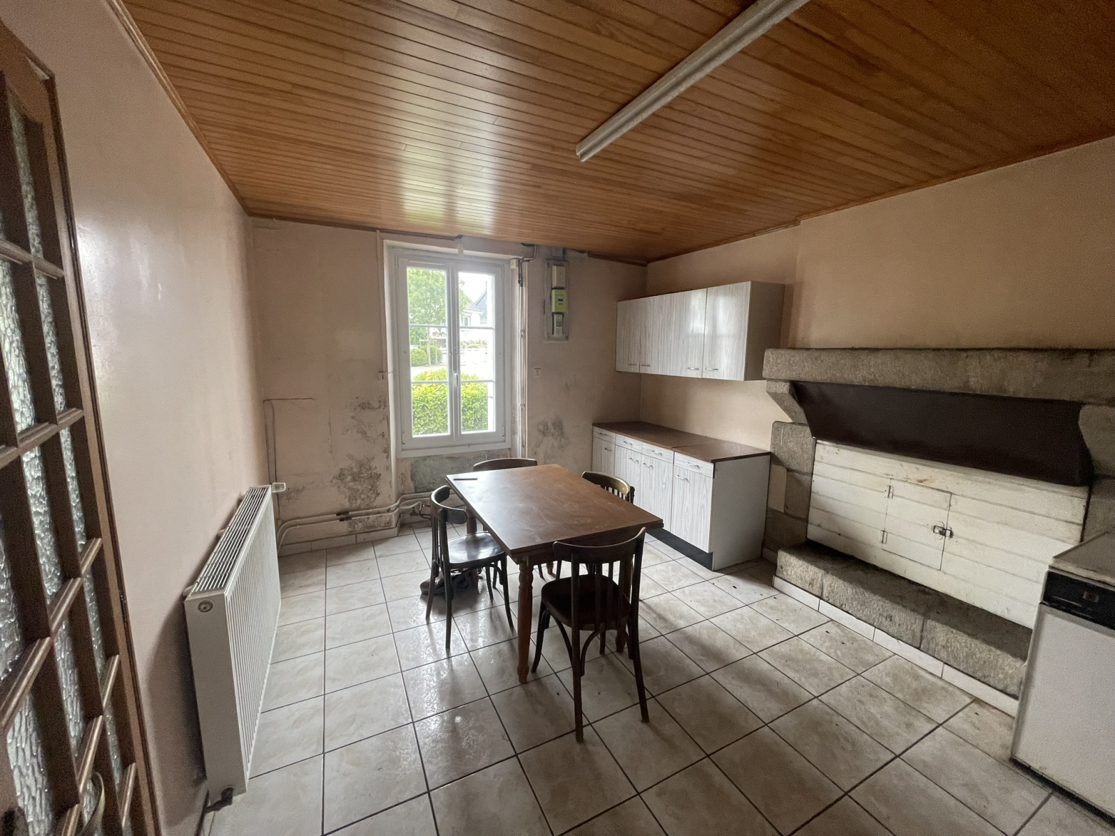 Entrée, cuisine, salle avec cheminée,véranda, WC, salle d'eau,buanderie.