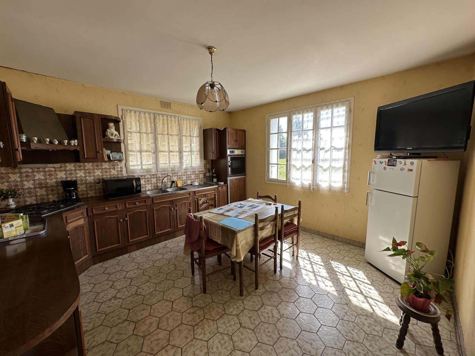 Au rez-de-chaussée : Un Hall d'entrée, desservant une belle pièce de vie très lumineuse avec salle aménagée salon avec cheminée insert, une cuisine, trois belles chambres, une salle de bain et un WC