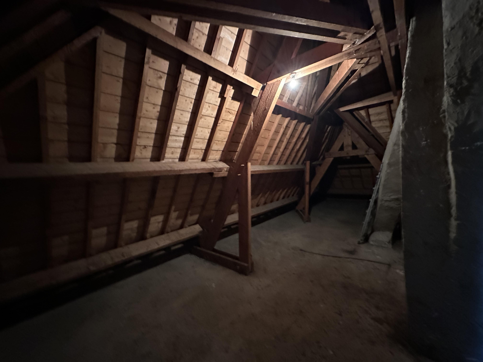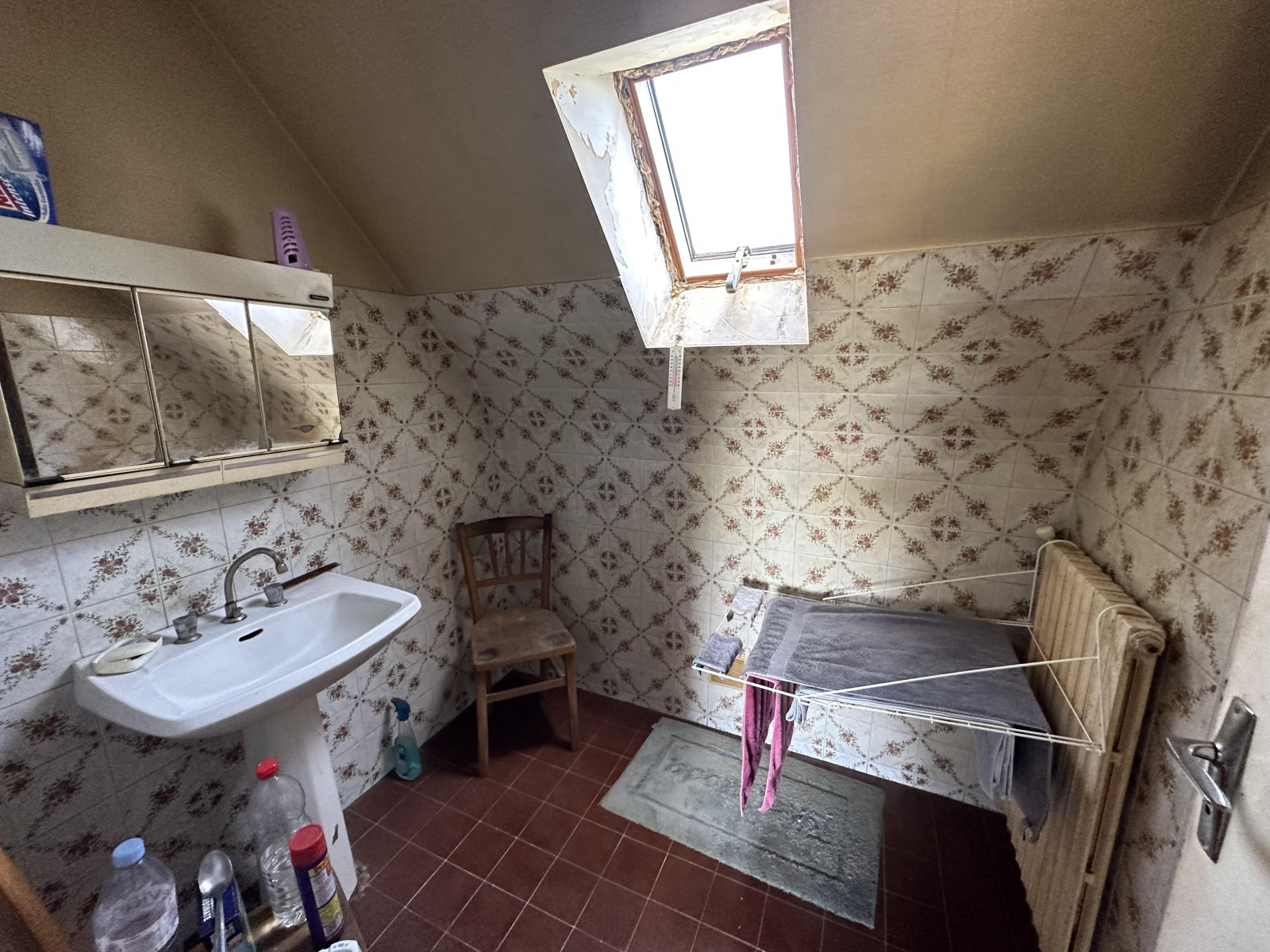 À l'étage : deux chambres et deux greniers, un point d'eau et un WC.