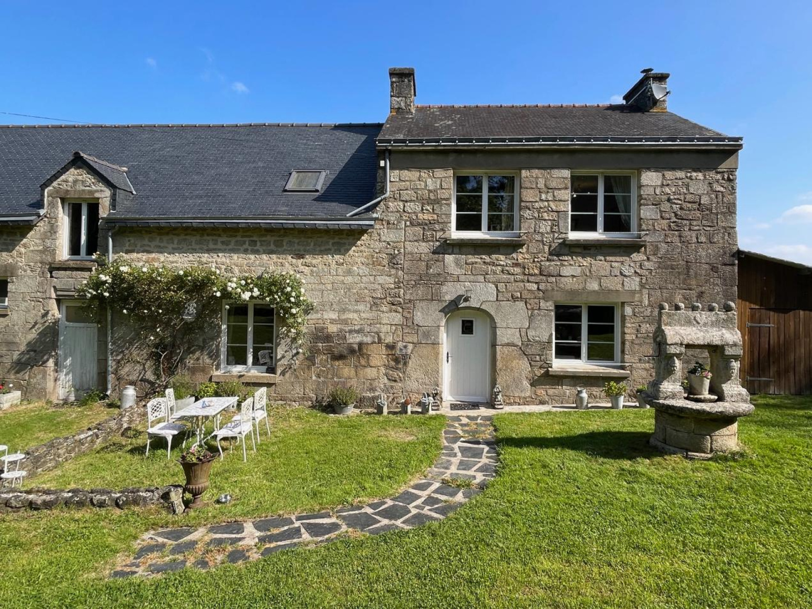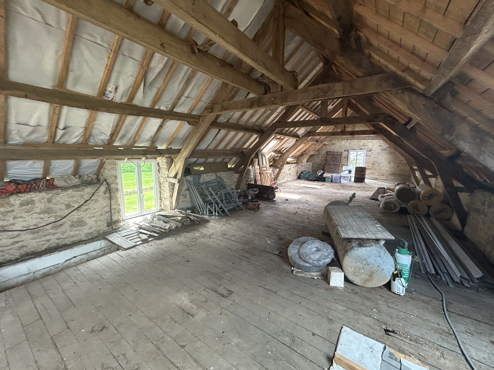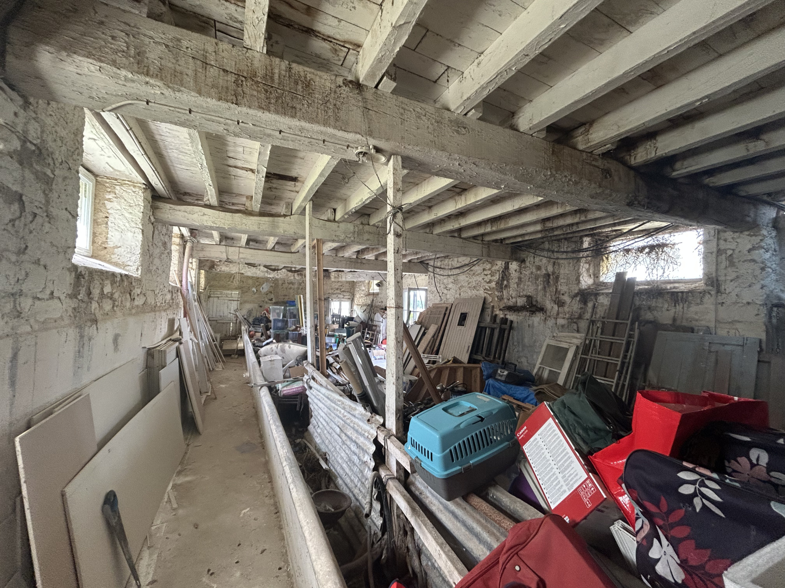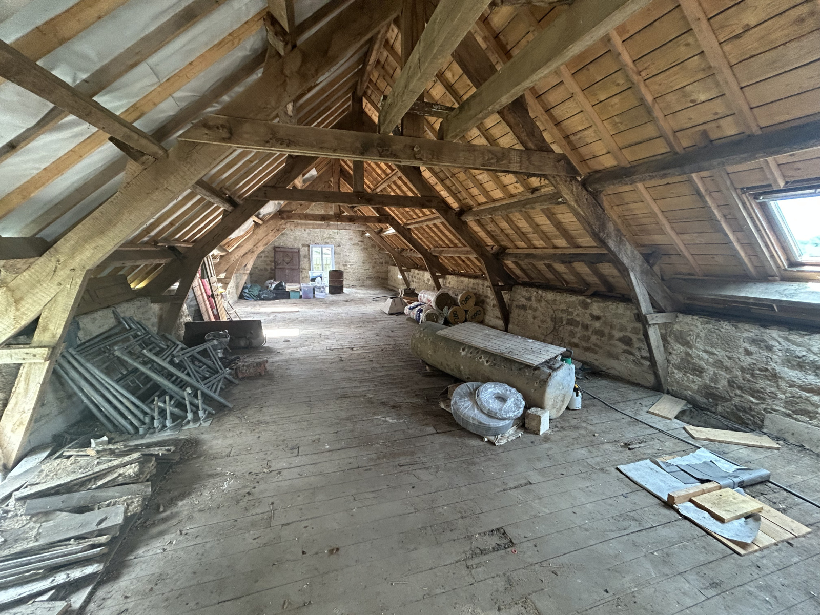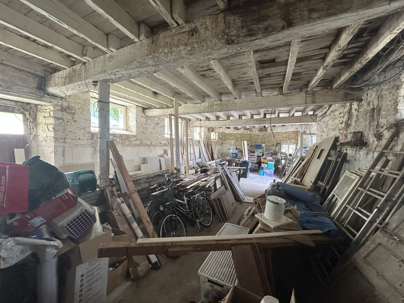 En annexes : Une étable de 100 m2 au sol à aménager sur 2 niveaux.