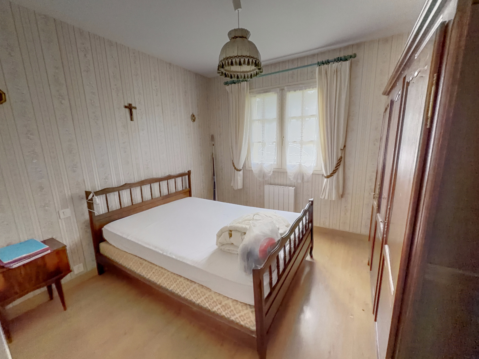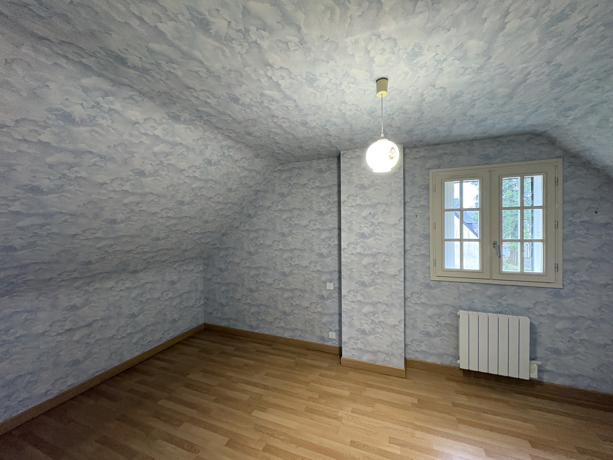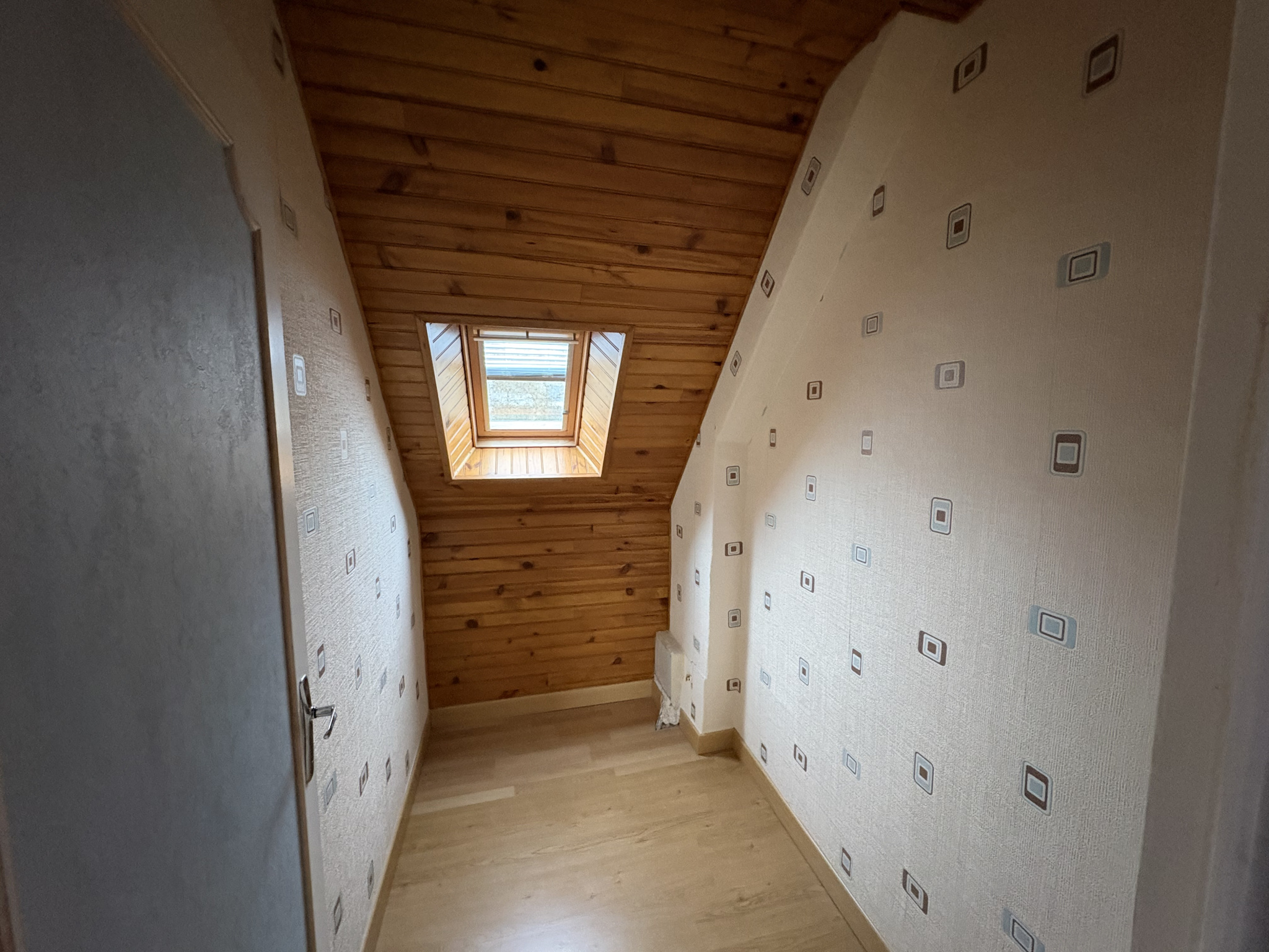 À l’étage, un palier distribue deux chambres ainsi qu’un point d’eau avec WC, idéal pour un espace nuit dédié aux enfants ou aux invités.