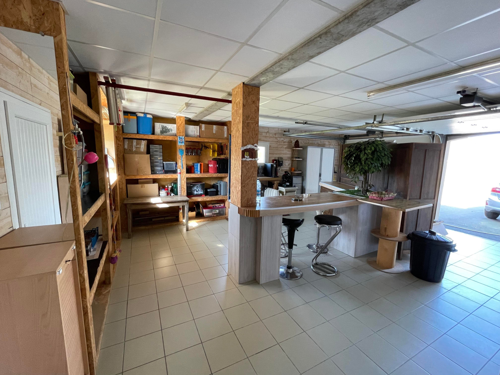 Un double garage de 55m² avec de très nombreux rangements.