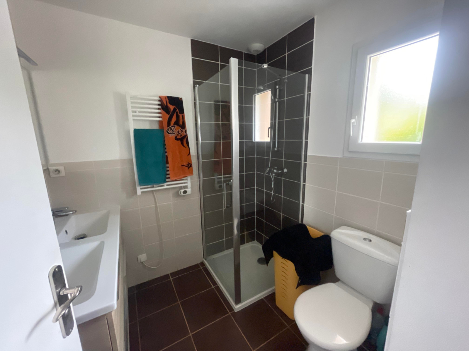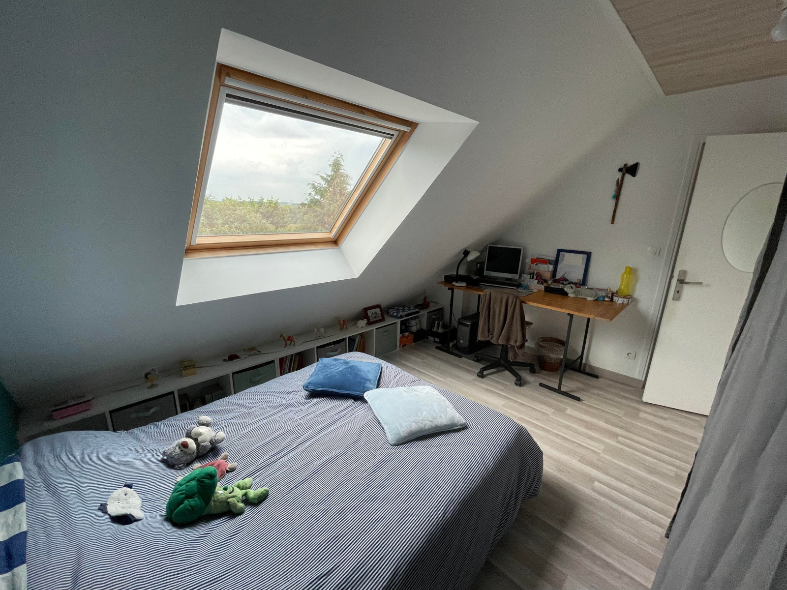 A l'étage : Trois belles chambres dont une avec un dressing, une salle de bain avec WC.
