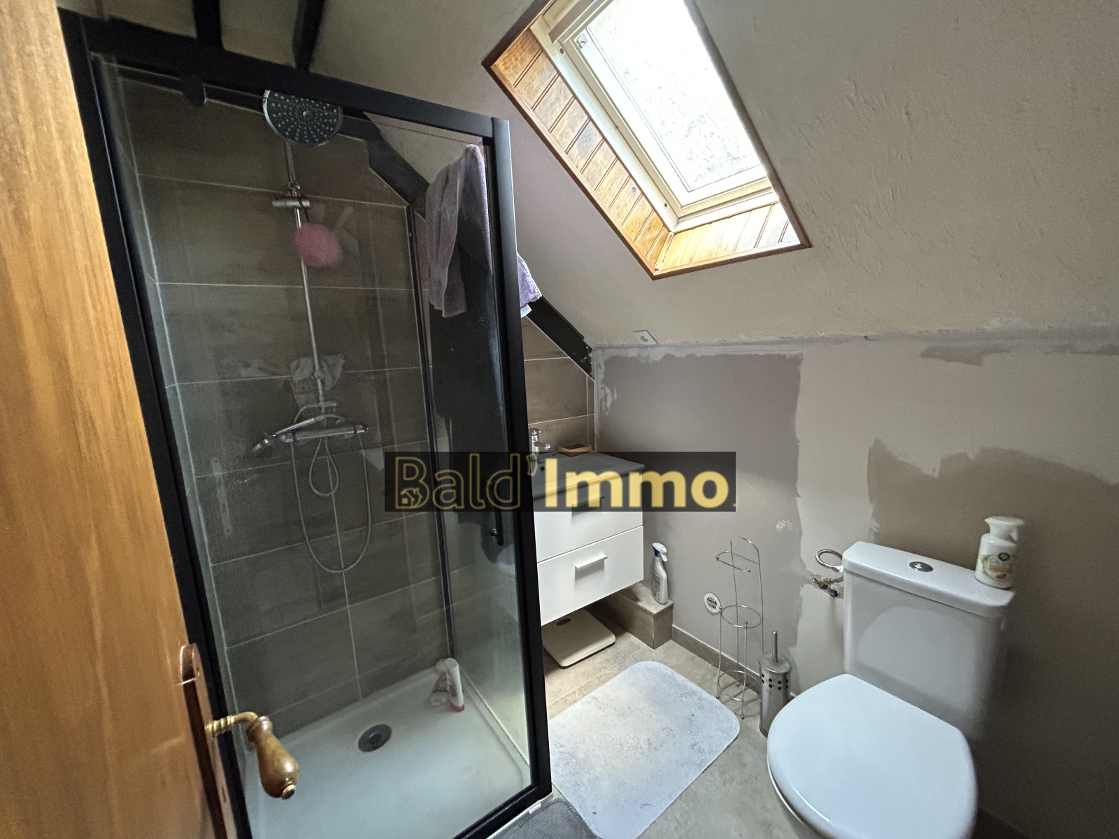 À l'étage : deux belles chambres, une salle d'eau avec WC.