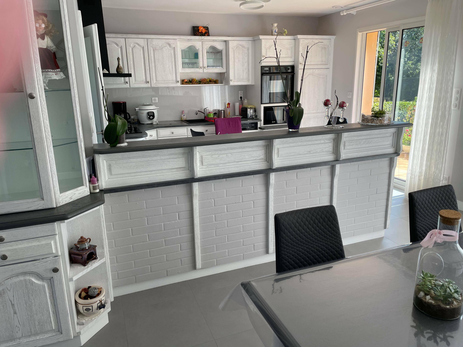 Grande terrasse avec coin barbecue et four.